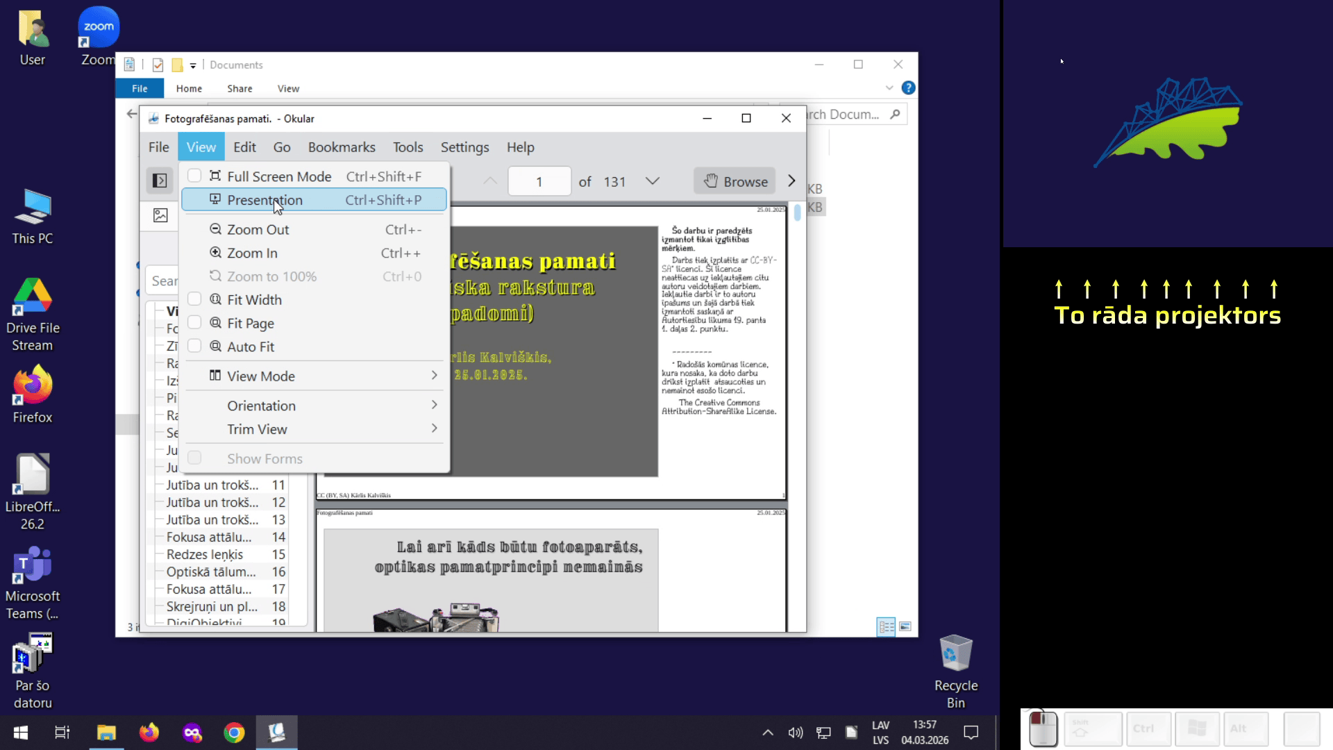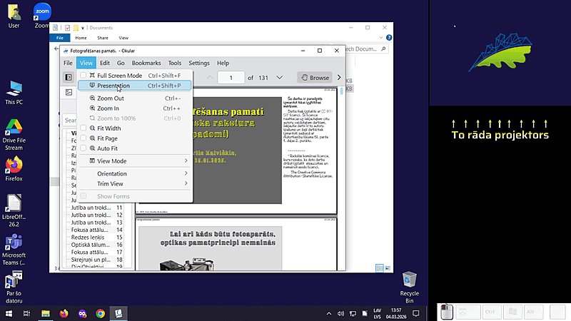 Prezentācijas režīma ieslēgšana.